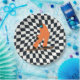 Freeride Snowboarder in Orange Anzug Checkered Pappteller