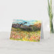 Diese Karte, die aus einer originalen Aquarellcollage stammt, stellt den Adler dar, der über ein Feld von Blume als Sets fliegt.