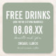 Freie Getränke bei einer grünen Hochzeit sparen die Untersetzer in einem modernen Typografie-Design, das lautet "Freie Getränke (und wir heiraten)". Passen Sie Ihren Namen, Ihre Hochzeitsstandorte und Ihr Datum an.