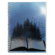 Bücher sind ein unendlicher Wissenswald, wie in dieser wunderschönen digitalen Kunstszene dargestellt, die ein offenes Buch, einen Wald und einen Vogelschwarm in der Silhouette enthält