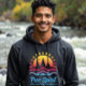 Dieser T - Shirt ist ideal für Menschen, die frei sind von Geist und Liebe zu reisen oder Orte zu erkunden. Der blaue Text lautet "Free Spirit" und "over and beyond border" mit einem Script und san serif Schriftart. Eine abstrakte Szene ist illustriert mit Sonne, Wellen, Bäumen und Vögeln mit einem bunten Gefälle. Ein passender Hut steht ebenfalls zur Verfügung.
