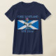 Ein T-Shirt für Anhänger der schottischen Unabhängigkeit. Die Ausrüstungsbeschreibungen eine Illustration einer Distel, der Blume von Schottland, gegen einen Hintergrund der schottischen Flagge oder des saltire. Der Slogan liest "freies Schottland. Ja 2014." Der Entwurf wird durch das Referendum 2014 inspiriert, wenn Schotten über die Zukunft der Nation abstimmen.
