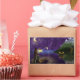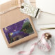 Mädchen auf einem Boot, das eine Fee aus ihrer Laterne auf die mystische Insel freisetzt.