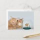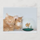Orangefarbene Katzen teilen sich die Qualität ihrer Zeit zusammen und beobachten dabei einen nervösen Goldfisch in seinem Schüssel Foto Postkarte