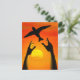 Zwei Arme, die einen Vogel mit einem herrlichen Sonnenuntergang hinter sich lassen