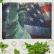 Schönes Foto Composite mit der Freiheitsstatue gegen eine US-Flagge und Feuerwerk Hintergrund. Das Bild erhält ein grunges Overlay für einen alten nostalgischen Look. Ideal für alle patriotischen amerikanischen Feiertage. Dieses Bild kommt auf vielen Zazzle-Produkten.