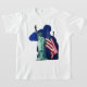 Vektorgrafik, die die amerikanische Flagge, eine Soldatensilhouette und die Freiheitsstatue kombiniert.