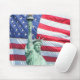 Ein patriotisches Design mit Symbolen für Amerika und Freiheit: die Freiheitsstatue und die US-Flagge.