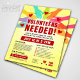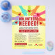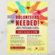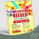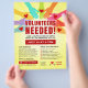 Freiwillige benötigen Werbung Flyer Template Features bunten Hände mit roten Herzen, gelben Hintergrund und fett Typografie. Passen Sie die Vorlage Ihren Wünschen an.