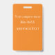Dieses Abzeichen für einen Freiwilligen oder Mitarbeiter weist einen weißen Hintergrund mit einem Beispiellogo in der Mitte auf. Sie können das ID-Abzeichen personalisieren, um Ihr eigenes Unternehmens-, Geschäfts- oder Firmenlogo oder Ihr eigenes individuelles Image anzuzeigen. Unter dem Logo befindet sich ein Bereich zum Drucken eines Mitarbeiternamens oder eines anderen Textes. Der Titel "VOLUNTEER" wird rechts über ein orangefarbenes Banner gedruckt. Auf der Rückseite des ID-Abzeichens befindet sich ein orangefarbener Hintergrund mit weißem Text, auf dem Sie Ihre Firmentelefonnummer oder andere Informationen eingeben können.