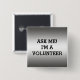 SCHWARZER TEXT DER FREIWILLIG-KNOPF-BUTTON-%PIPE% UND METALLISCHES SILBER DRUCKFoto-EFFEKT-HINTERGRUND. FRAGEN SIE MICH. Ich bin EIN FREIWILLIGER. BEHALTEN SIE DIESES SPRICHWORT ODER ÄNDERN SIE ES ODER SCHAFFEN SIE IHRE SELBST ZUM ANZUG IHR FREIWILLIGER DAS S-BEDARF DER ORGANISATION ODER WOHLTÄTIGKEIT-''. SIE KÖNNEN SIE AUCH ADDIEREN, LOGO ZU BESITZEN. BENÖTIGEN SIE ANDERE FARBEN FÜR DEN HINTERGRUND? TRETEN SIE BITTE MIT GESCHÄFTSINHABER IN VERBINDUNG. MOVIEFUN©