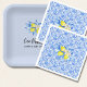 French Blue Tile & Lemon Paper Napkins | Elegant Mediterranean Party Decor