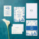 French Blue Whimsical Ribbon Crest Wedding Begleitkarte