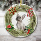 Dieses hübsche Holiday-Ornament besticht durch einen bezaubernden französischen Bulldog. Der Hund ist mit einem Kiefernkranz gerahmt, der mit einem roten, grünen und goldenen Stern verziert ist, den der Hund anschaut. Ebenfalls inbegriffen ist ein gestreifter Bogen und Poinsettia und heilig mit roten Beeren. Die Rückseite des Ornaments hat den gleichen Kranz, mit zwei Textfeldern, die Sie anpassen können.