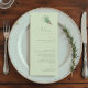Elégante carte de menu de pays français avec des sprigs de romarin aquarelle attachés en ficelle, dans une palette verte à la sauge douce. Idéal pour les mariages d'automne, de printemps, d'été ou d'hiver au charme rustique, botanique et moderne. Parfait pour les fêtes saisonnières, de vacances et de cottagecore.