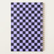 A checkerboard pattern with alternating lavender and black squares fills the image. The repeating geometric design gives a balanced and rhythmic appearance.