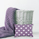 Ein akzentes Kissen mit einem Polka Dotmuster von weißen Miniherzen auf französischem lila Hintergrund.