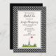 Eine Party Einladung zum Brauttee mit französischem Thema. Der Hintergrund besteht aus einem niedlichen Schwarz-Weiß-Polka-Punktmuster. Ein weißer Rahmen mit einem schwarzen Rahmen überlagert. Ein skurriler zeichn mit dem Eiffelturm im Hintergrund, umgeben von grünen Bäumen.
