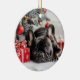Dieser bezaubernde Weihnachtsschmuck mit einem schwarzen französischen Bulldog unter einem Weihnachtsbaum ist ein wunderbares Geschenk für jeden französischen Liebhaber.