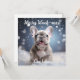 Eine charmante Grußkarte, die die pure Freude an der Urlaubssaison erweckt. Auf der Vorderseite der Karte befindet sich ein bezaubernder französischer Bulldog Welpe, der in einer schneebedeckten Landschaft mit grenzenlosem Enthusiasmus gefeiert wird. Das ansteckende Glück der Jungtiere ist offensichtlich: Schneeflocken fallen sanft herum und schaffen eine ruhige und festliche Atmosphäre. Oben auf der Karte befindet sich ein benutzerdefinierbarer Textbereich, in dem Sie eine persönliche Touch hinzufügen können. So können Sie die Botschaft an den Anlass anpassen oder Ihre individuellen Gefühle vermitteln. Zum Beispiel könnte man einen herzlichen Feiertagsgruß hinzufügen wie "Einen glücklichen Weihnachten wünschen!" oder eine Botschaft verfassen, die bei Ihrem Empfänger ankommt. Die Rückseite der Karte bietet ausreichend Platz für eine handgeschriebene Notiz oder eine detailliertere Nachricht, um sicherzustellen, dass Ihre persönliche Touch über das charmante Bild auf der Vorderseite hinausgeht. Diese Grußkarte wird zu einem herzlichen Ausdruck des Feiertagssjubels und verbindet die bezaubernde Natur eines französischen Bulldog Welpen mit dem festlichen Zauber eines verschneiten Tages.