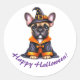 Frenchie Halloween Purple Robe Witchy Hat Runder Aufkleber