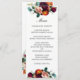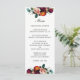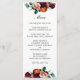 Wunderschön romantisch und ideal für Empfänge im Herbst, Spätsommer oder im Winter, bietet dieses Menü romantische Farbtöne wie Bordeaux, Rosa, Rosa, Orange und ätherische Vegetation in einem schönen Blumenrahmen am oberen und unteren Rand des Designs. Auf der Rückseite des Menüs werden Blumensträuße an den gegenüberliegenden Ecken der Karte aufeinander abgestimmt. Personalisieren Sie die Textvorlage mit Ihren Menüoptionen. Weitere passende Hochzeitsprodukte stehen zur Abstimmung mit diesem Artikel zur Verfügung.