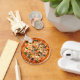 Ein Pizzapiekuchen, wie er diesen Schlüsselanhänger schmückt, der mit Pizzapupfeln aller Art ausgestellt ist, kann man einen eigenen Texttumor hinzufügen oder nur einen preiswerten Schlüsselanhänger als Gastgeschenk für eine große Gruppe.