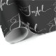 Dieses elegante Weihnachtsgeburtspapier sagt "Joyful" in der modernen weißen Skriptkalligraphie auf einem dunkelschwarzen Hintergrund.