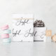 Dieses elegante schwarz-weiße Weihnachtswappenpapier sagt "Joyful" in der modernen schwarzen Skriptkalligraphie auf einem einfachen weißen Hintergrund.
