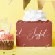 Diese elegante Weihnachtsverpackung sagt "Joyful" in der modernen weißen Schrift Kalligraphie auf einer festlichen roten Farbe.