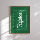 Minimalistisches Urlaubsposter mit "Rejoice" Schrift, weiß auf grünem Hintergrund, gerahmt mit einem einfachen Bogen. Ein sauberes und modernes Dekor an der Weihnachtsmauer feiert die Saison.