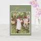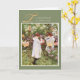 2 Mädchen, die in einem Vintagen Blumengarten stehend sind, sind sehr süß und erinnern Ihren Freund an Ihre aufrichtigen Wünsche für einen glücklichen Tag der Mutter.