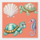 "Animals Friends of the Ocean" ist ein Thema, das an eine faszinierende Unterwasserwelt erinnert, die von zarten und harmonischen Meereslebewesen wie Schildkröten, Muscheln und Seepferden bevölkert ist.