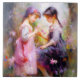 Ein Bild von zwei Freunden, die Blume in einem Garten bewundern. Es wäre ein schönes Kinderzimmer-Dekor.