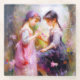Ein Bild von zwei Freunden, die Blume in einem Garten bewundern. Es wäre ein schönes Kinderzimmer-Dekor.