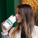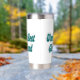Freundin mit grüner Halbtypografie Thermobecher