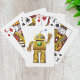 Roboter können so freundlich sein, wie dieses Design beweist. Dieses Design ist ein freundlicher Roboter, der stehend und winkend ist. Der Roboter ist Gold und hat einen grünen Knopf auf seiner Brust und grüne Augen. Dieses freundliche Roboterdesign sieht auf diesen Spielkarten großartig aus. Perfekt für sich selbst oder als Geschenk