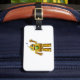 Roboter können freundlich sein, während dieser Entwurf prüft. Dieser Entwurf ist ein freundlicher Roboter, der stehend und Wellenartig bewegen ist. Der Roboter ist Gold und hat einen grünen Knopf auf seinem Kasten und grünen Augen. Dieser freundliche Roboterentwurf schaut auf diesen Gepäckanhängern groß. Vervollkommnen Sie für selbst oder als Geschenk