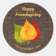Maßgeschneiderter Erntedank / Friendsgiving dekorative Aufkleber, geeignet für Umschläge, Pakete und Favoriten. Fröhliche Herbstlaub auf rustikalem Holzfußboden. Klicken Sie auf Anpassen, um die Text- oder Hintergrundfarbe zu ändern.