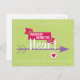 Farbenfrohe Postkarte mit 'Freundschaft wärmt das Herz' Slogan auf grünem texturiertem Hintergrund. Spaß-Karte, um an einen Freund oder Lieben zu senden oder in Ihrem Zuhause auf einem Regal oder Kaminstück anzuzeigen.
