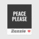 Frieden bitte schwarz-weißer Text einfache minimalistische Anti-Krieg Protest Custom-Cut Vinyl Sticker. Benutzerdefinierter weißer Text auf schwarzem Hintergrund. Vollständig anpassbarer Text und bearbeitbare Farben.