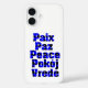 Magst du friedliche Handy-Fälle? Sie werden diese Telefonzelle, die Frieden in Sprachen wie Französisch, Spanisch, Englisch, Polnisch und Niederländisch sagt, in einem Muster von blauen und schwarzen Herzen.