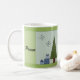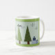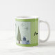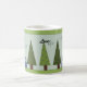 Whimsikal grüne Weihnachtsbäume mit hübsch verpackten Packungen in blau. Tanzende Schneeflocken und wunderbare Worte, Ruhe, Freude und Liebe unterstreichen dieses Design. Liebliche Weihnachtsfeier Tasse zu Ihrer Sammlung hinzufügen oder geben.