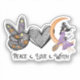 Dieses niedliche und mystische Design enthält die Worte "Friede, Liebe Hexe" mit den entsprechenden Darstellungen - ein Friedenszeichen, ein Herz und eine Hexe auf einem Halbmond. Es ist perfekt für ein Halloween-Fest.