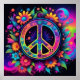 Dieses lebendige und psychedelische digitale Kunstwerk zelebriert den Geist des Friedens und der Liebe. Ein farbenprächtiges Friedenssymbol nimmt die zentrale Bühne ein, umgeben von einem Aufstand blühender Blume in einem Kaleidoskop von Farben. Die aufwändigen Details und die kühnen Farbtöne schaffen ein faszinierendes visuelles Erlebnis, das die Energie und den Optimismus der Gegenkultur der 1960er Jahre weckt.