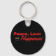 Frieden, Liebe und Glück Button Schlüsselanhänger