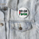 Im Nachhinein würde ich eher den Button mit Magnet bestellen... damit dieser bei jeder Kleidung angebracht werden kann. Sehr gute Bildqualität