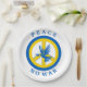 Blaues und gelbes Friedenssymbol und Text "PEACE-NO WAR"