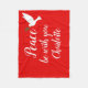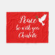 Personalisierte rot-weiße Decke mit der Nachricht "Friede sei mit dir, und eine schöne weiße Taube mit einem Olivenzweig.
