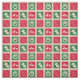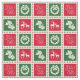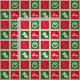 Weihnachtsdesign mit Weihnachtssymbolen auf bunten Plätzen und mit Schneeflocken-Dekoration